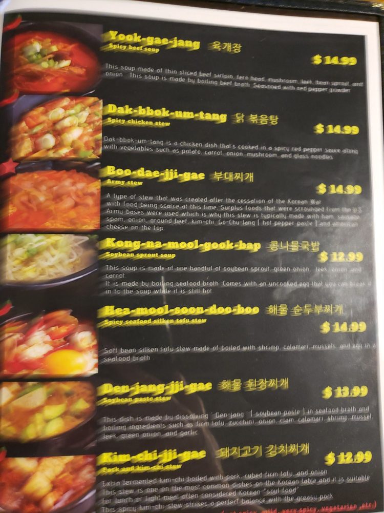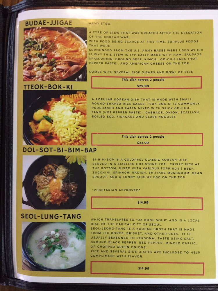 The menu shines with its vibrant selections. Start with their 5 Piece Kim Mari for a crispy delight or the savory Steamed Shrimp Dumplings. Don't miss their Korean Traditional Pancakes, especially the Kimchi Pancake, which balances spice and texture beautifully. For the main course, the BiBimBap is a must-try, with a rich mix of vegetables and a perfectly cooked egg in a bed of rice. Customers rave about the Dduk Bae Gi Bool Go Gi, a comforting hot stone pot dish that warms the soul.